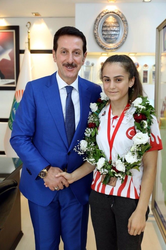 2-9 Eylül 2017 tarihleri arasında, Makedonya’nın Üsküp kentinde düzenlenen Gençler Avrupa Kick Boks Şampiyonası’ndan Avrupa Şampiyonluğu ile dönen İlkadım Belediyesi sporcusu Fatma Zehra Kol, İlkadım Belediye Başkanı Erdoğan Tok’u makamında ziyaret etti.