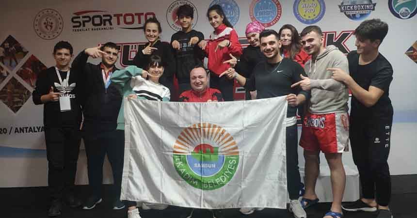 Antalya'nın Konyaaltı ilçesinde düzenlenen turnuvaya, 81 ilden gençler ve büyükler kategorisinde yaklaşık 2 bin sporcu katılım sağladı. Antrenör Fatih Karagöl gözetiminde çalışmalarına devam eden Turuncu mavili kulübün kick boks sporcuları şampiyonada rüzgarlar estirdi. İlkadım Belediyespor'un farklı kilo ve kategorilerde mücadele eden ve Antalya'da düzenlenen Türkiye Açık Kick Boks Şampiyonası'nda genç erkekler full contact kategorisinde ringe çıkan Cengiz Avcı güçlü rakiplerini geride bırakarak Türkiye şampiyonu oldu. Büyük erkeklerde Altuğ Demir Türkiye ikincisi oldu. Büyük Bayanlar kategorisinde ise zorlu rakiplerini mağlup etmeyi başaran Devrim Aydın Türkiye Şampiyonu olurken Tuğbanur Kıvrak ise Türkiye üçüncüsü oldu.