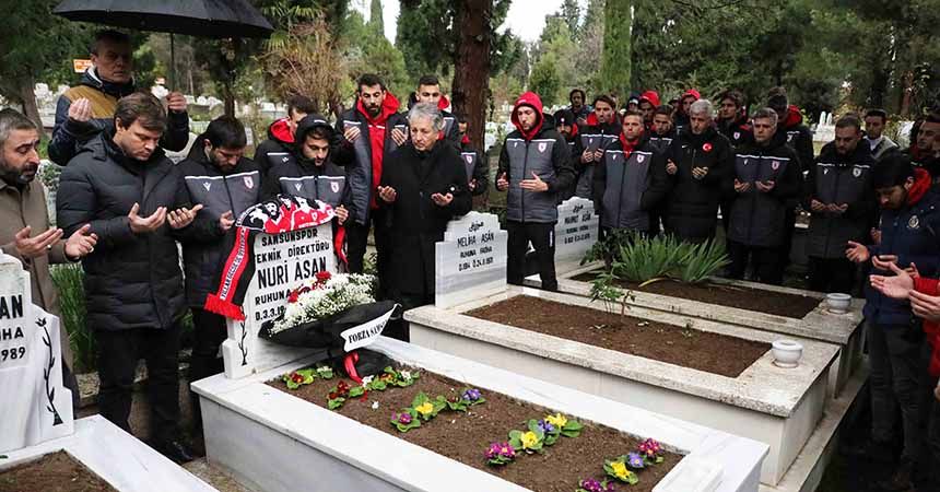 Samsunsporlu futbolcular ve teknik heyet 20 Ocak 1989 tarihinde yaşanan trafik kazasında hayatını kaybeden teknik direktör Nuri Asan ve otobüs şoförü Asım Özkan’ın kabrini ziyaret etti.