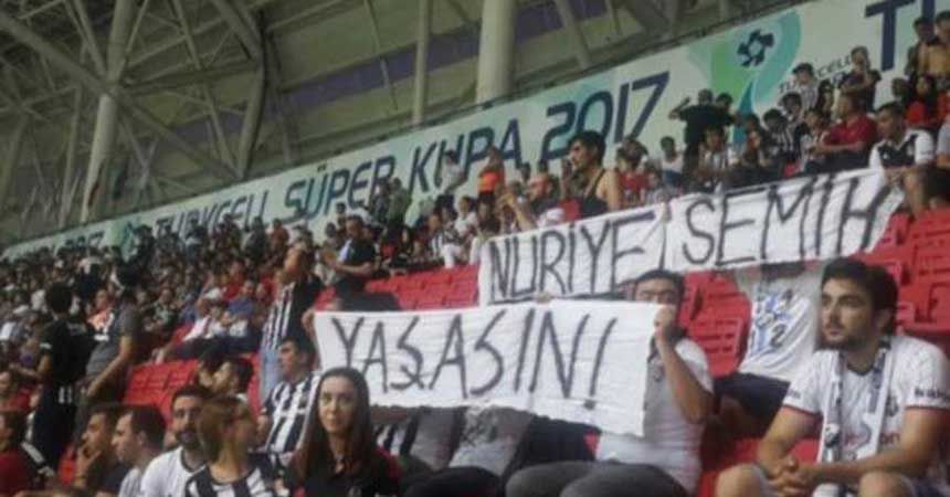 Samsun Valiliğinden yapılan açıklamada, 6 Ağustos’ta saat 20.45’te Samsun Yeni 19 Mayıs Stadı’nda Beşiktaş-Atiker Konyaspor arasında oynanan Turkcell Süper Kupa maçında halen cezaevinde açlık grevinde olan terör örgütü DHKP/C mensupları Nuriye Gülmen ve Semih Özakça’ya destek amaçlı “Nuriye-Semih Yaşasın” ibareli pankart açıldığı belirtilerek, “Olayla ilgili başlatılan tahkikatta il dışından Samsun’a gelen ve taraftardan tespitleri yapılan bir grup tarafından saat 20.05’te kale arkası kuzey üst tribününde pankart açıldığı, açılan pankartı 3 parça halinde şahısların üzerlerine gizlemek suretiyle stadyuma soktukları, olay yerinde çektikleri fotoğrafları sosyal medya hesaplarından paylaştıkları ve olay sonrası geldikleri illere döndükleri anlaşılmıştır. Samsun Cumhuriyet Başsavcılığından alınan talimat doğrultusunda ‘terör örgütünün propagandasını yapmak’ suçundan tespiti yapılan şahıslarla ilgili adli soruşturma başlatılmıştır” denildi.