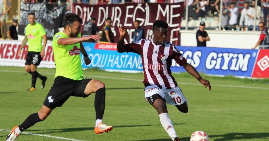 65. dakikada kullanılan taç atışı sonrası rakibini vücut çalımıyla geçen Sarpong’un ceza sahası dışından sert şutu farklı şekilde auta gitti.