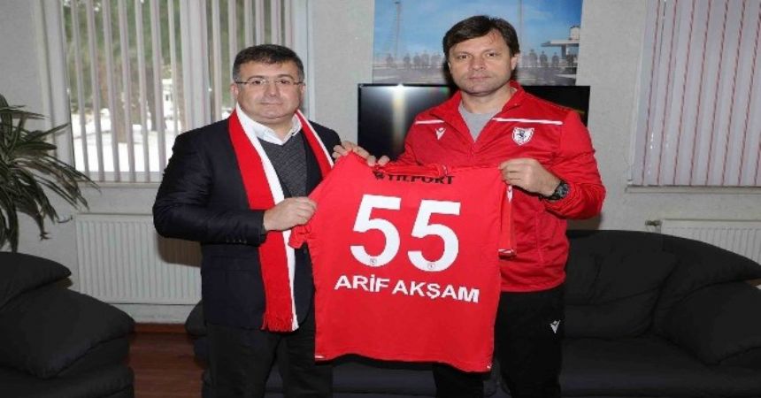 Ziyarette Teknik Direktör Ertuğrul Sağlam, YEPAŞ Genel Müdürü Arif Akşam'a isminin yazılı olduğu 55 numaralı Samsunspor forması hediye etti.