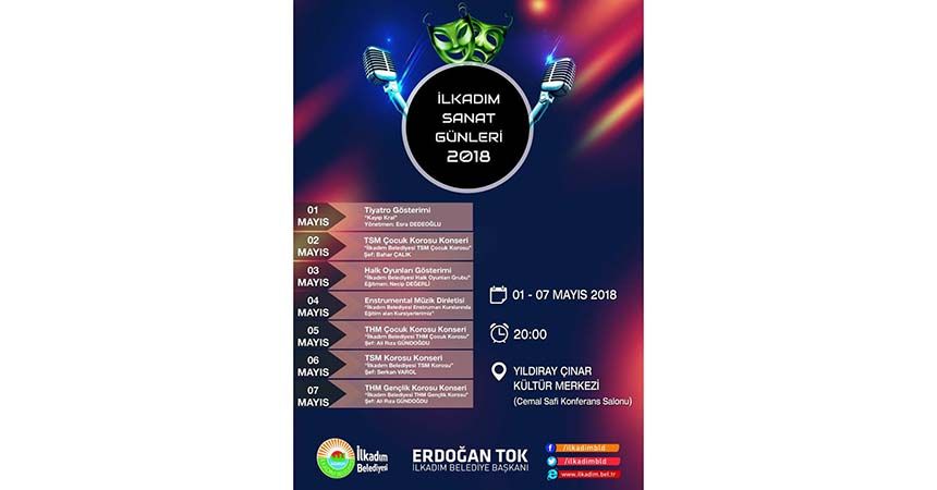 Tiyatro gösterimi, TSM Çocuk Korosu Konseri, Halk Oyunları Gösterimi, Enstrumental Müzik Dinletisi, THM Çocuk Korosu Konseri, TSM Korosu Konseri, THM Gençlik Korosu Konseri ve Usta öğreticilerin el emeği ürünlerinin sergilenmesi gibi birçok etkinliğin düzenleneceği İlkadım Sanat Günleri 2018 programı 1 Mayıs da Yönetmenliğini Esra Dedeoğlu’nun yaptığı “Kayıp Kral” Tiyatro Gösterimi ile sanatseverlere eğlenceli dakikalar yaşattı.