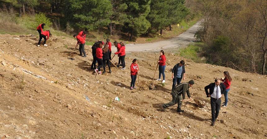 Konuşmaların ardından fidan dikimine geçilen etkinlikte protokol üyeleri, öğrenciler ve askerler fidanları dikerek can suyunu verdiler. Fidan dikme etkinliğine katılarak doğa sevgisi kazanan anaokulu çocuklarına ise yetkililer, bir fidanın nasıl dikilmesi gerektiğini de öğreterek ağacın önemini anlattılar.