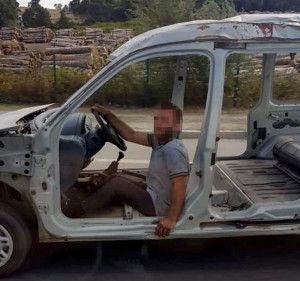 "CAMSIZ, KAPISIZ VE DIŞ CEPHESİZ ARAÇLA TRAFİKTE GEZİYOR"